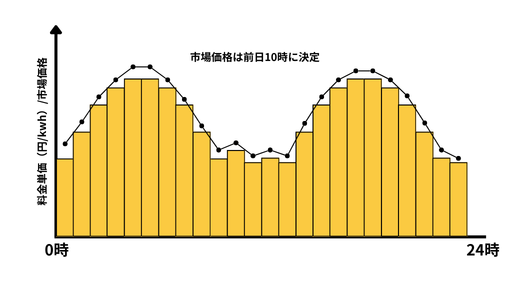 市場価格が落ちる時間帯(主に昼間)に集中して電気を使用できれば、大幅に電気代を安くすることができます。
