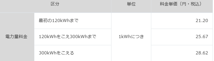 | 120 キロワット時をこえ 300 キロワット時までの1キロワット時につき | 24.10 円 | |