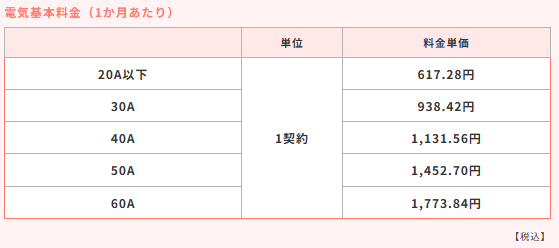 基本料金と電力量料金単価の比較表は以下の通りです。