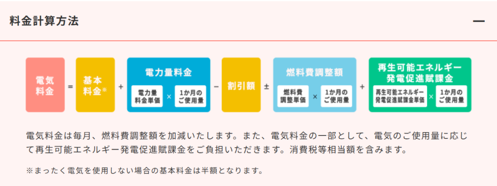 燃料費調整額と再生可能エネルギー発電促進賦課金は中部電力と同じなので、