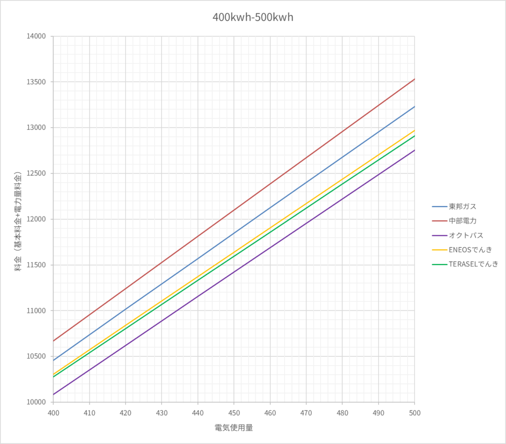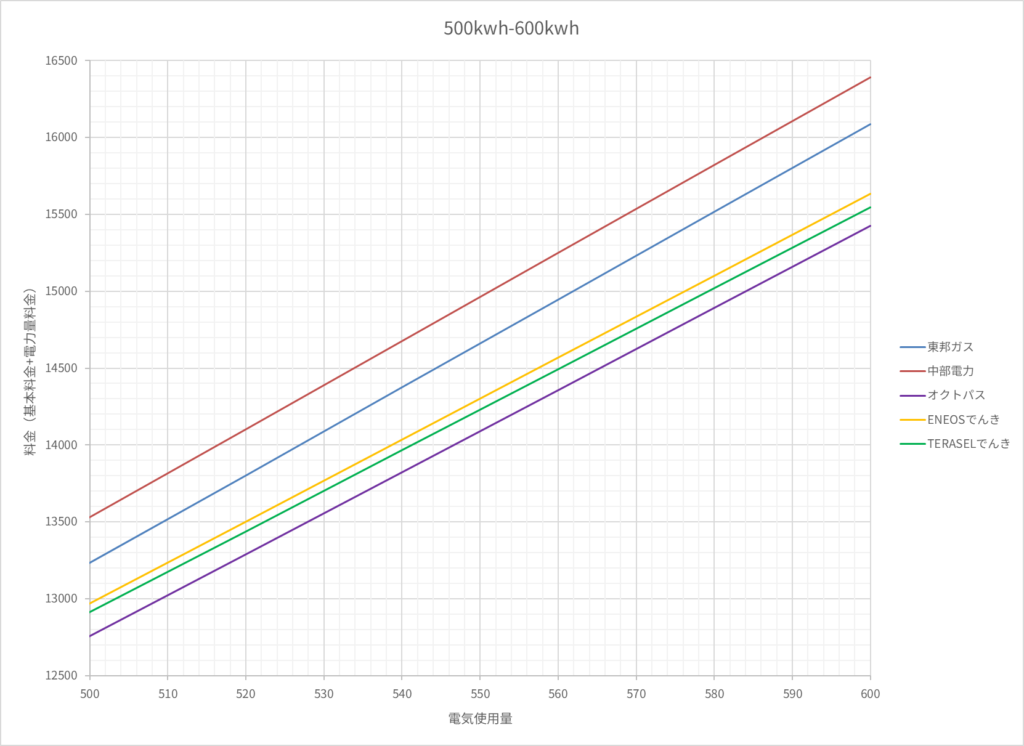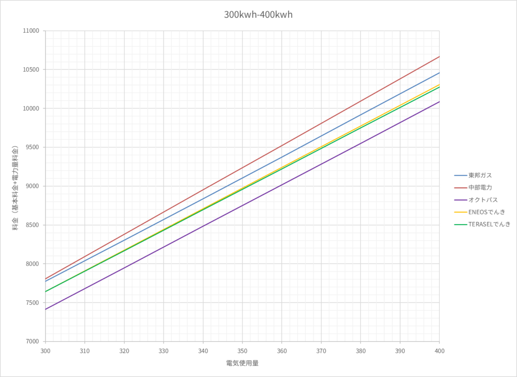 300kwhまではオクトパスエナジーが最安、301kwh以上はTERASELでんきが最安